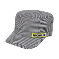 ミシュランマンがひょこっとのぞいた刺繍がポイントのヒッコリーのワークキャップです。